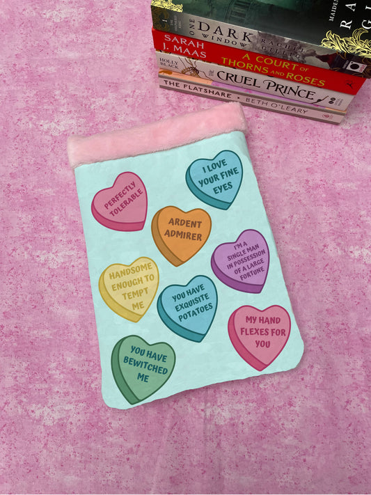 Pride and Prejudice Conversation Hearts Book Sleeve - Mr. Darcy Pride and Prejudice Pick Up Lines Handmade Design