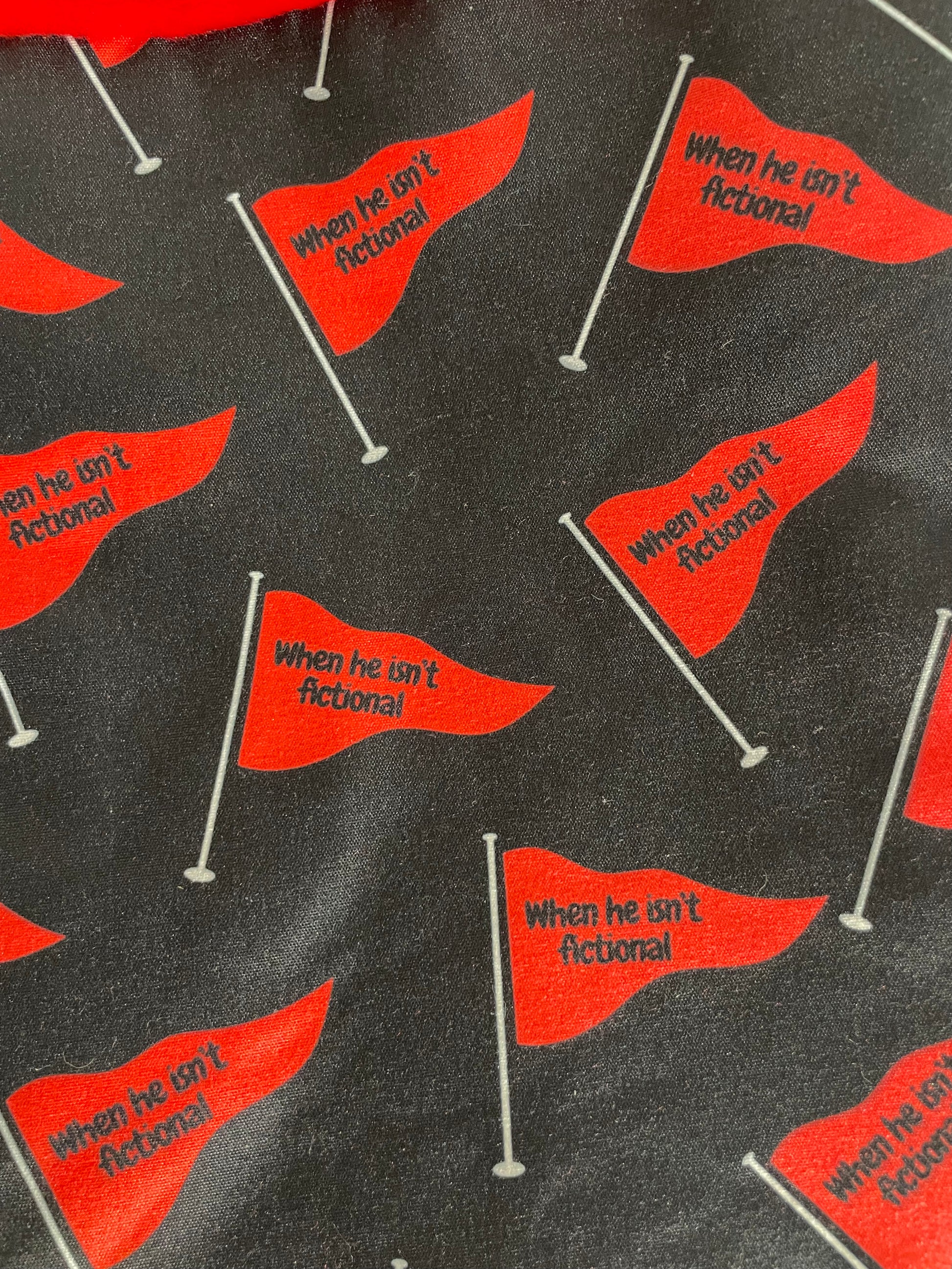 If your heart belongs to book boyfriends and emotionally unavailable men who only exist on the page, this double sided handmade book sleeve is made for you. One side proudly declares “Emotionally Attached to Fictional Men,” while the other delivers the perfect reality check with red flags and the phrase “When He Isn’t Fictional.” It’s the ultimate bookish humor accessory for readers who know the difference between a perfect fictional love interest and a very questionable real-life one.