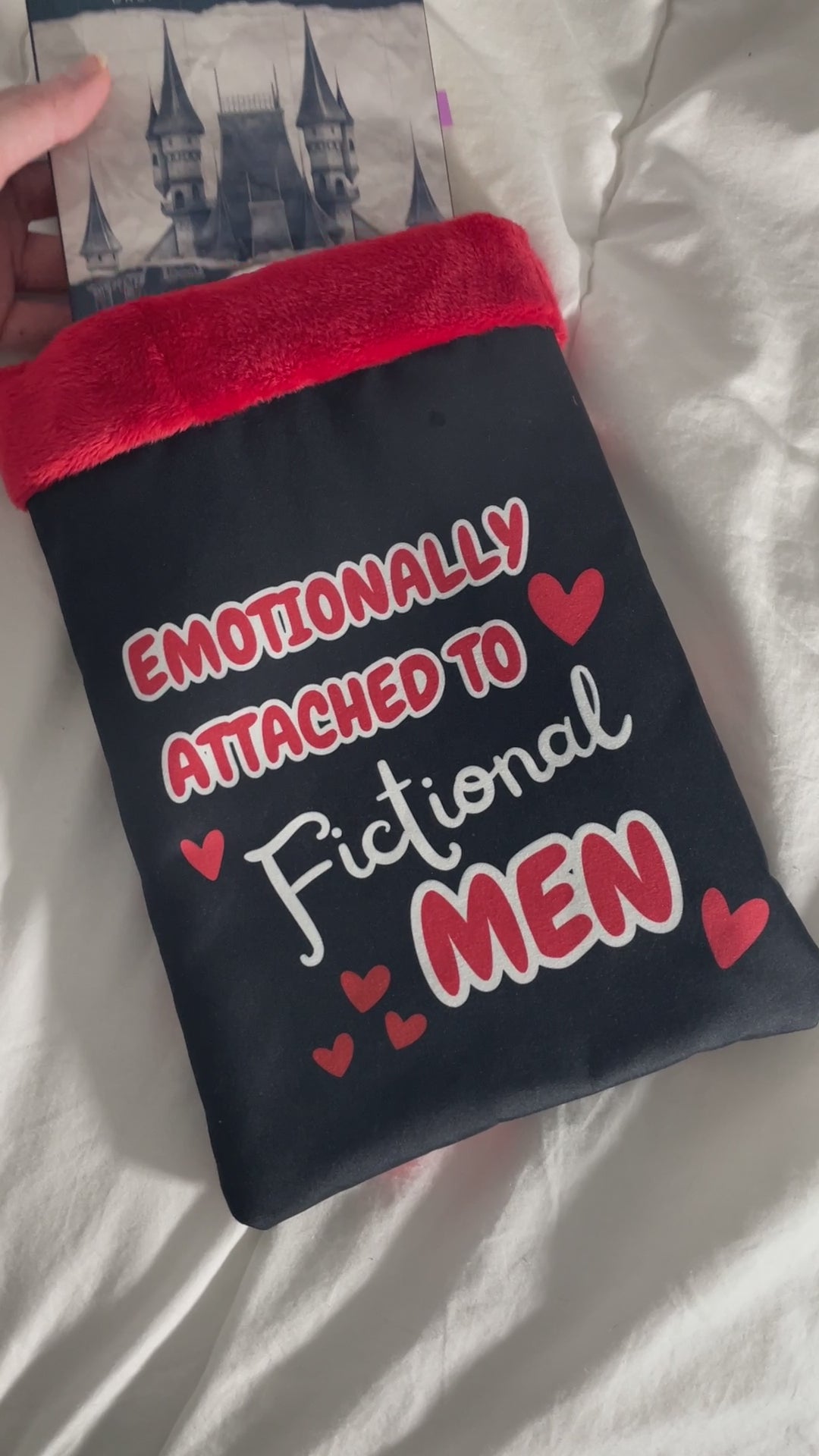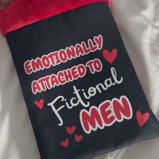 Emotionally Attached to Fictional Men – Double Sided Handmade Book Sleeve | Funny Bookish Gift for Readers, Book Boyfriend Lovers